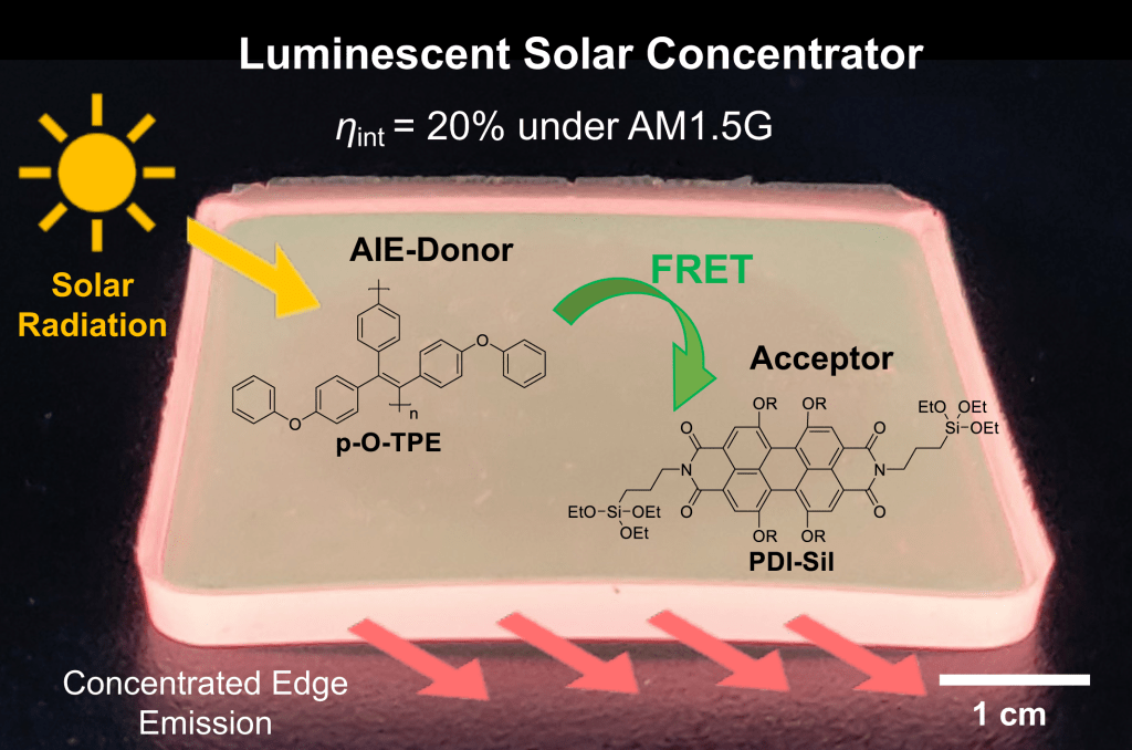 Congratulations to current and former group members Morton and James whose paper entitled “Luminescent Solar Concentrators Based on Energy Transfer from an Aggregation-Induced Emitter Conjugated Polymer” has been published in ASC Applied Polymer Materials.
